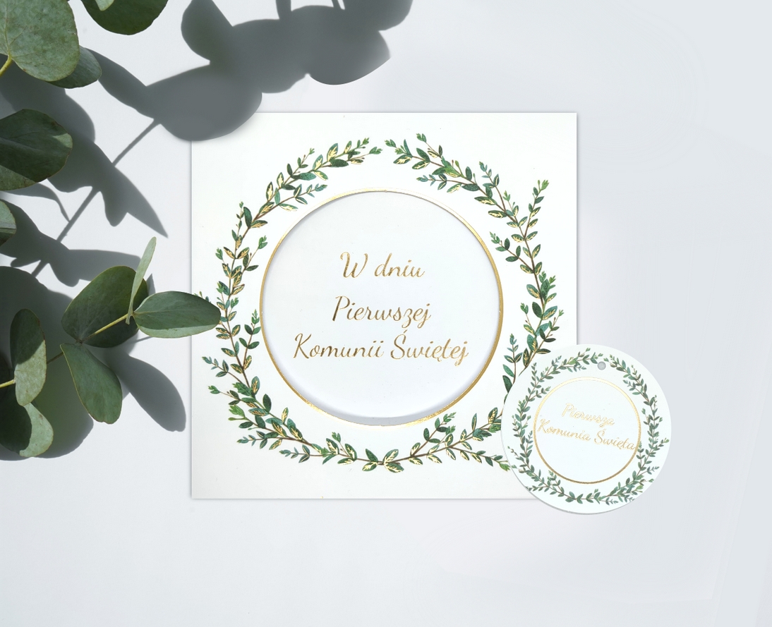 Szczegóły: Karnet KW Komunia. Wianek z liśćmi