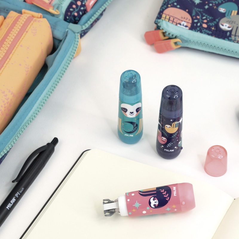 Szybki, czysty i dokładny. Korekty na wszystkich rodzajach papieru. Nie pozostawiają śladów na kserokopiach. Dostępne w 3 kolorach: zielonym, granatowym i różowym z nadrukami zwierząt z kolekcji CUDDLES. Rozmiar korektora: 7,7 x 2,2 cm.