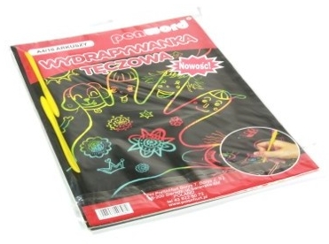 Opis: Wydrapywanka tęczowa A4 10 arkuszy + 2 rylce