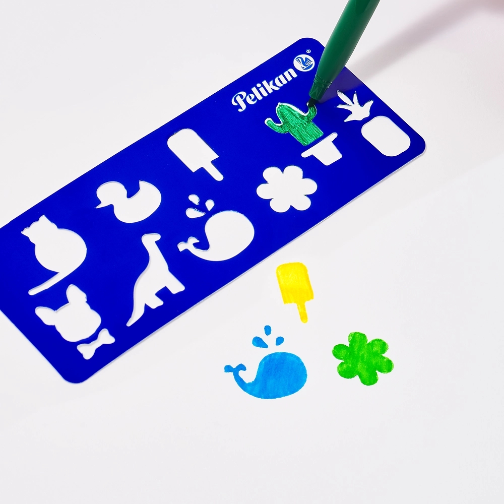 W komplecie znajduje się 18 podstawowych kolorów oraz 6 dodatkowych, specjalnych odcieni, co zapewnia bogatą gamę barw do różnorodnych projektów. Dodatkowo zestaw zawiera szablon, który ułatwia rysowanie precyzyjnych kształtów i wzorów, wspierając rozwój umiejętności artystycznych i manualnych. Wytrzymałe końcówki flamastrów gwarantują precyzyjne i płynne linie, a ich ergonomiczny kształt sprawia, że są wygodne w użytkowaniu nawet podczas dłuższego rysowania.