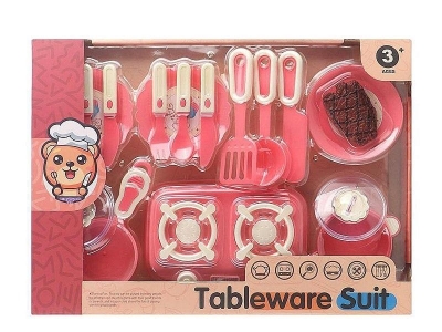 Zestaw naczyń kuchennych, z kuchenką; 40x29x5,5cm