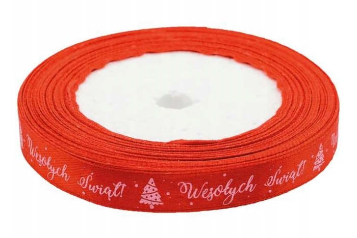 Opis: Wstążka satynowa z motywem świątecznym, 12x22m