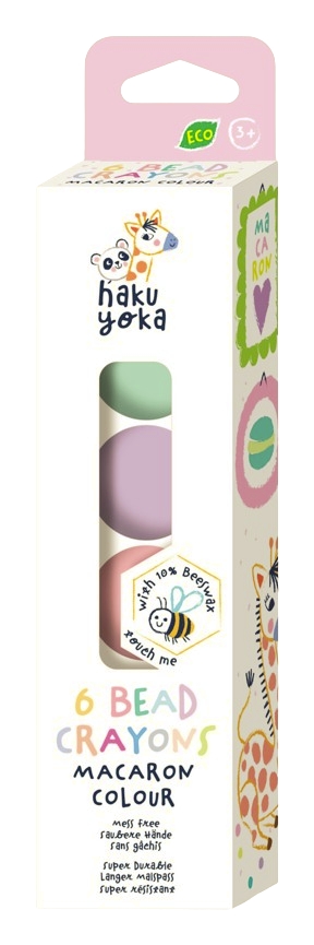 Eko kredy wykonane są z 10% wosku pszczelego, a ich opakowania wykonane są z papieru FSC.Nie pozostawiają plam.Opakowanie zawiera 6 kredek koralików w pastelowych kolorach.