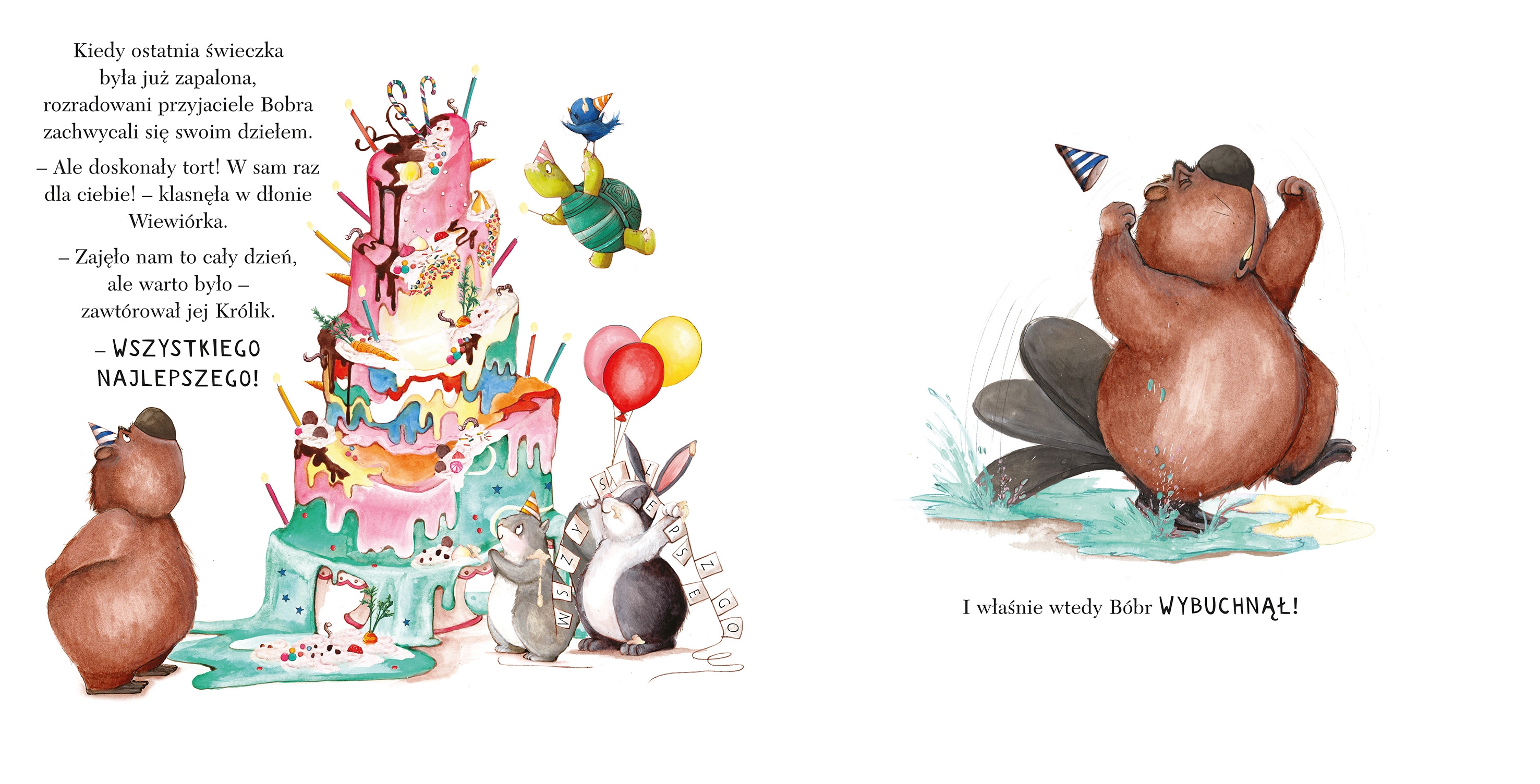 Wszystko robi starannie, uważnie i rozważnie. Teraz ma doskonały przepis na doskonały tort urodzinowy. Przyjaciele chcą mu pomóc i podzielić się radością wspólnego przygotowywania święta. Bóbr nie jest tym pomysłem zachwycony. A będzie jeszcze mniej zachwycony, kiedy zabiorą się do pracy... Oj, wiele się będzie działo!