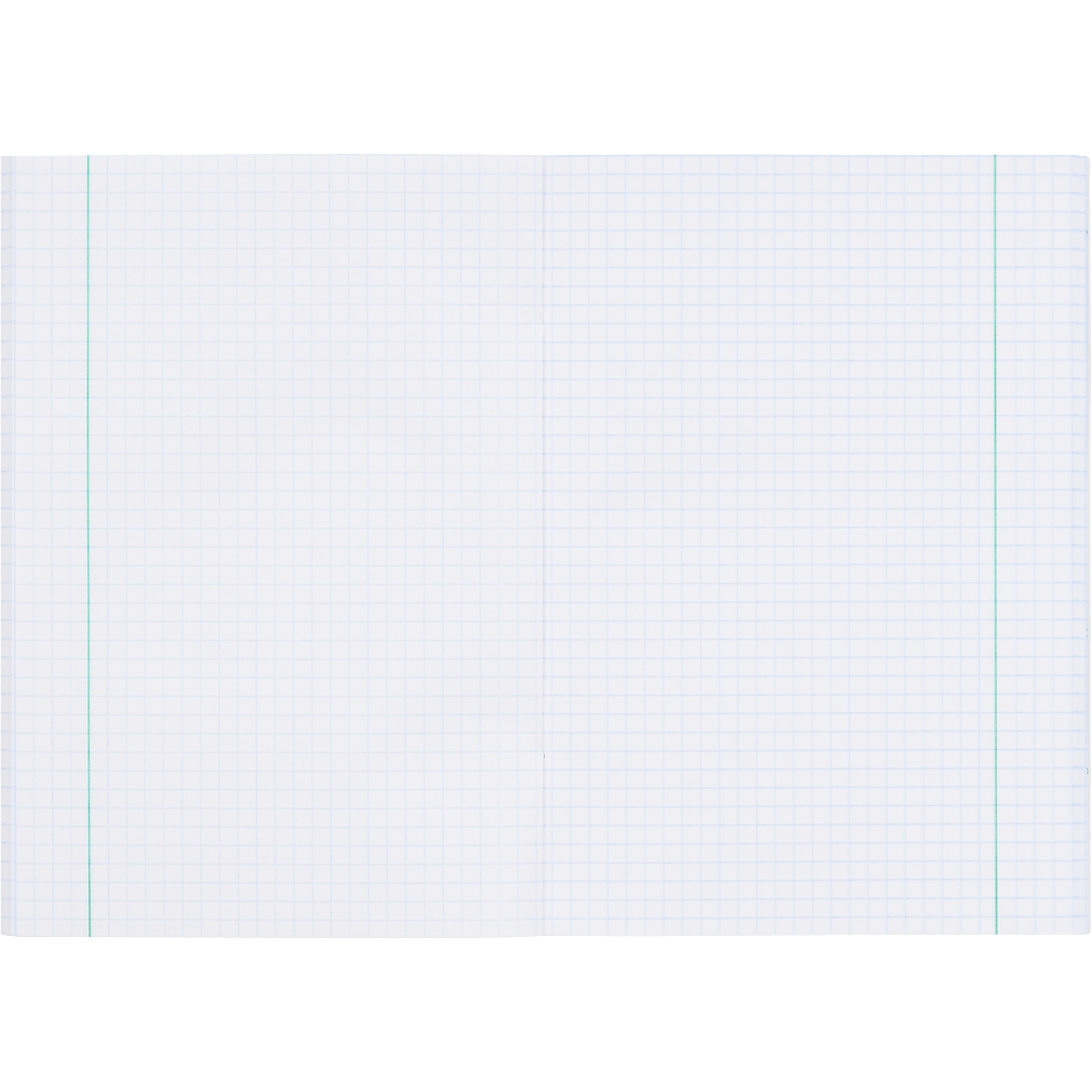 - Niebieska liniatura z zielonym marginesem – ekologiczna estetyka w środku