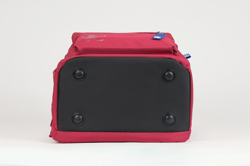 - Gumowe nóżki dystansowe na spodzie chronią plecak przez przetarciami i wilgocią