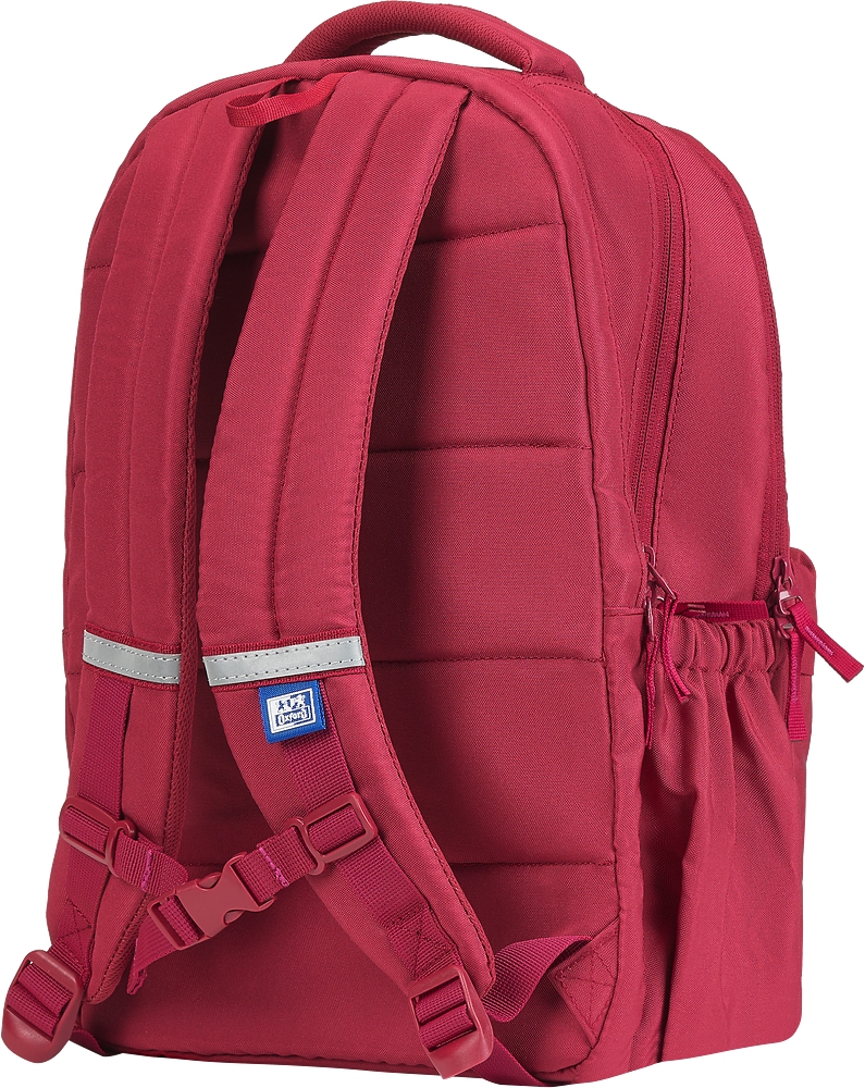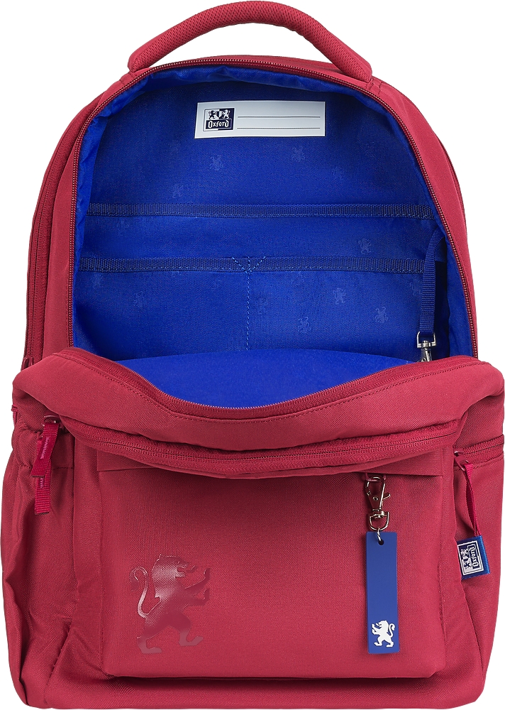 Funkcjonalny plecak Oxford School w jednolitym kolorze dla uczniów klas 4 – 8, szkoły średniej lub na trening sportowy. Posiada aż 3 komory pełniące różne funkcje. Pierwsza od strony pleców, to wyściełana komora z kieszenią na laptopa/notebooka do 16". Pomieści również wszelkiego rodzaju teczki, zeszyty czy bloki w formacie A4. W drugiej środkowej znalazły się 3 dodatkowe kieszenie wewnętrzne i przywieszka na klucze. W trzeciej, ostatniej komorze dodany został podręczny organizer zamykany na suwak. Całe wnętrze plecaka wyściełane jest podszewką w niebieskim kolorze, który reprezentuje markę Oxford wraz z nadrukiem lwa powtarzającym się regularnie na całej powierzchni podszewki. Z przodu plecaka znajduje się zewnętrzna kieszeń zamykana na suwak wraz z silikonowym breloczkiem z logo Oxford. Po obu stronach plecaka znajdują się kieszenie zewnętrzne. Jedna otwarta na bidon, druga zamykana na suwak przeznaczona na dokumenty lub telefon.