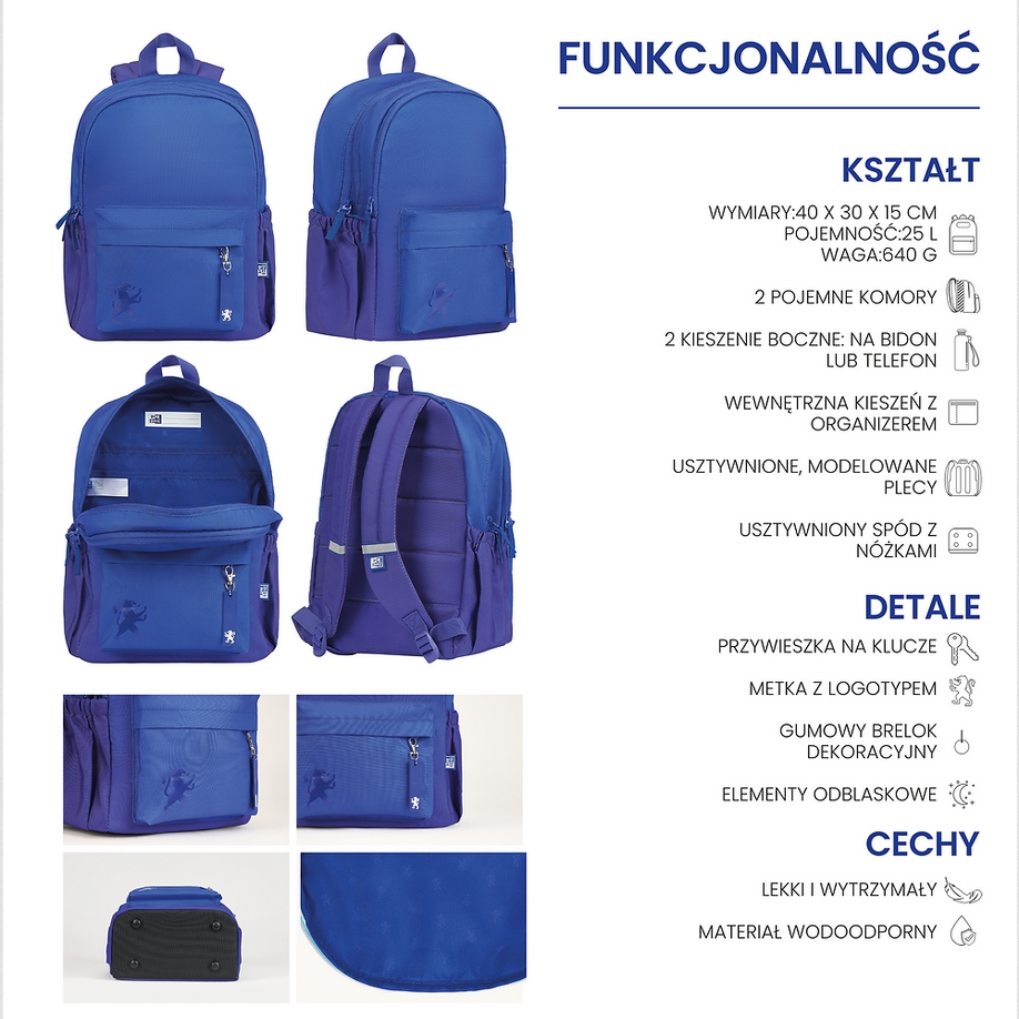 - 2 pojemne komory pozwolą spakować niezbędne szkolny przybory