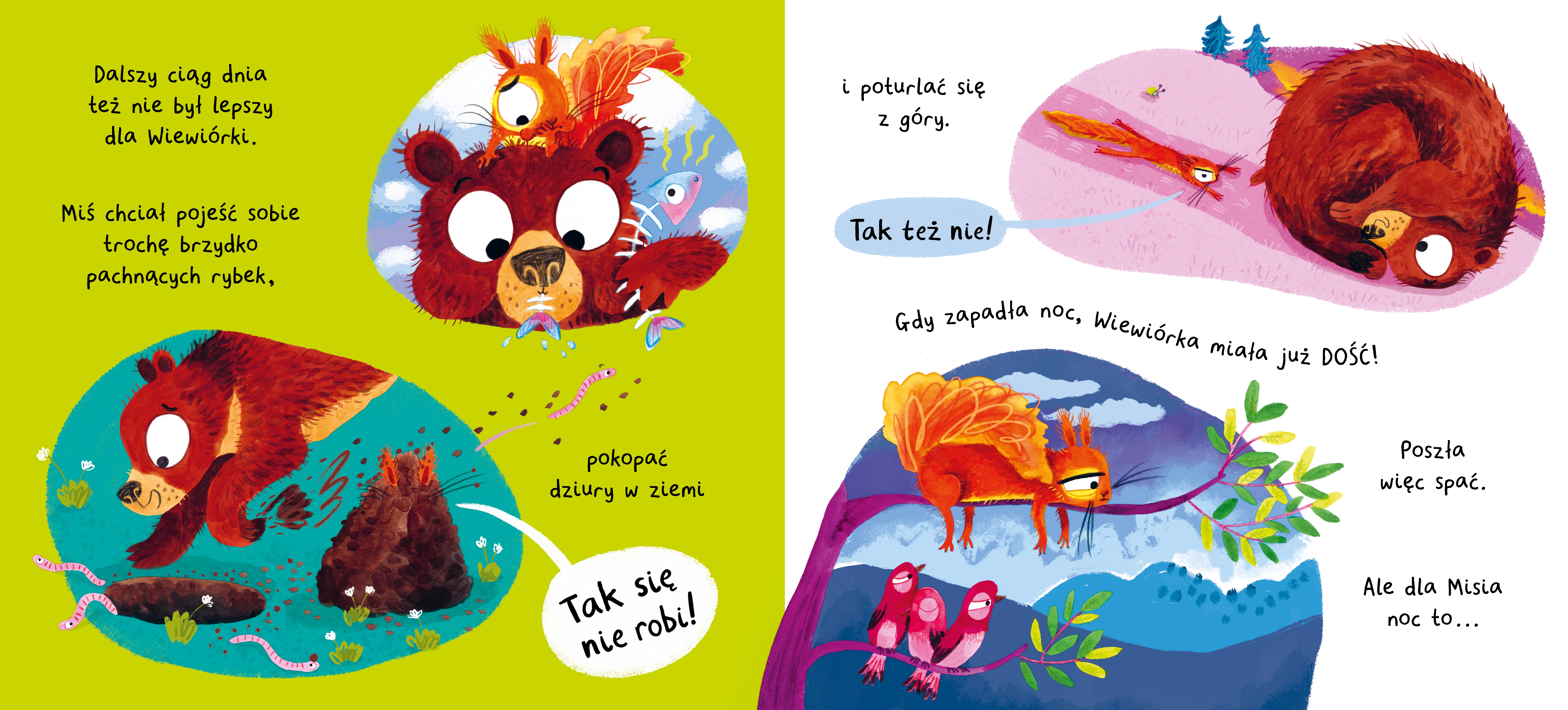 - Na końcu rozkładówka edukacyjna równie lekko i zabawnie mówi o tym, że można bardzo się lubić nawzajem, ale jednocześnie lubić różne rzeczy. Miś i Wiewiórka pokazują i radzą, jak wyrażać swoje uczucia, żeby lepiej się porozumieć i lepiej się poczuć.