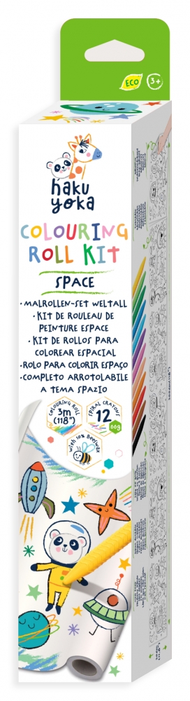 - Zawiera kolorowankę o rozmiarze 3m oraz 12kredek. Eko kredki wykonane są z 10% wosku pszczelego, a ich opakowania wykonane są z papieru FSC.