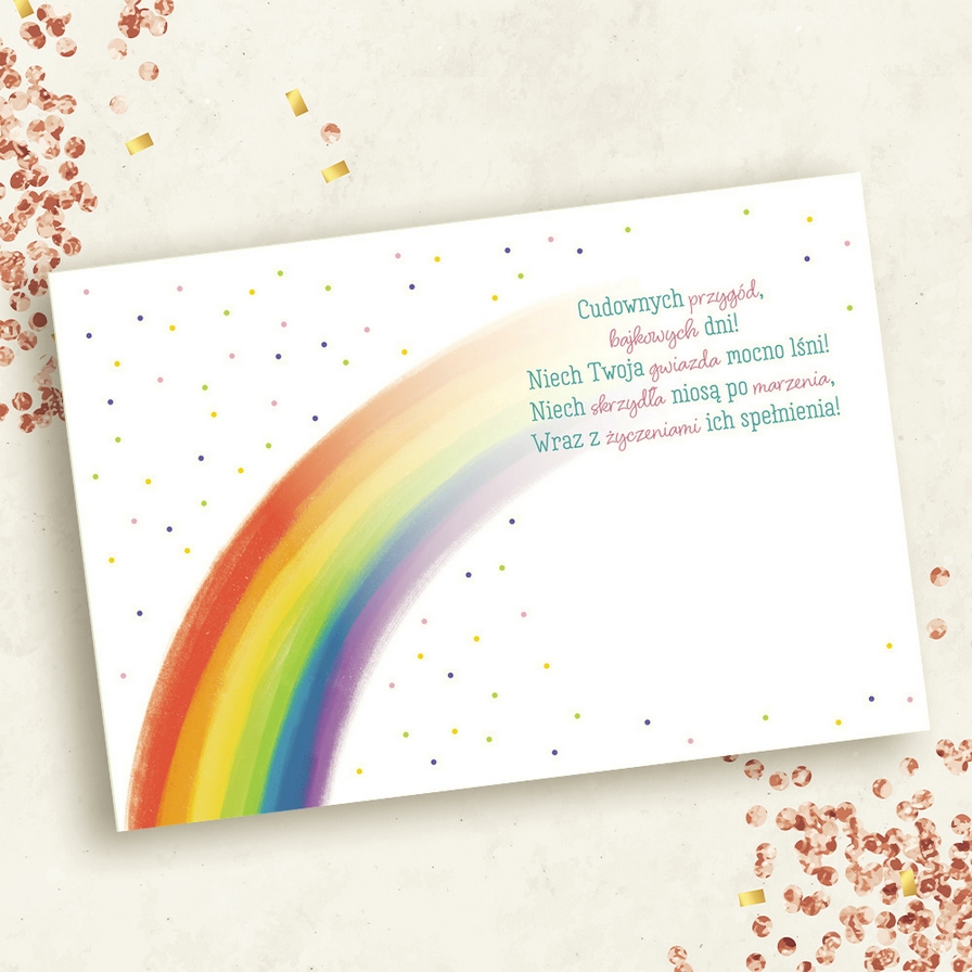 Karnet B6 JEDNOROŻEC Z GWIAZDĄ wydrukowany na wysokiej jakości papierze formatu B6. Karnet uszlachetniony złotem i tłoczeniem. W zestawie kolorowa koperta.