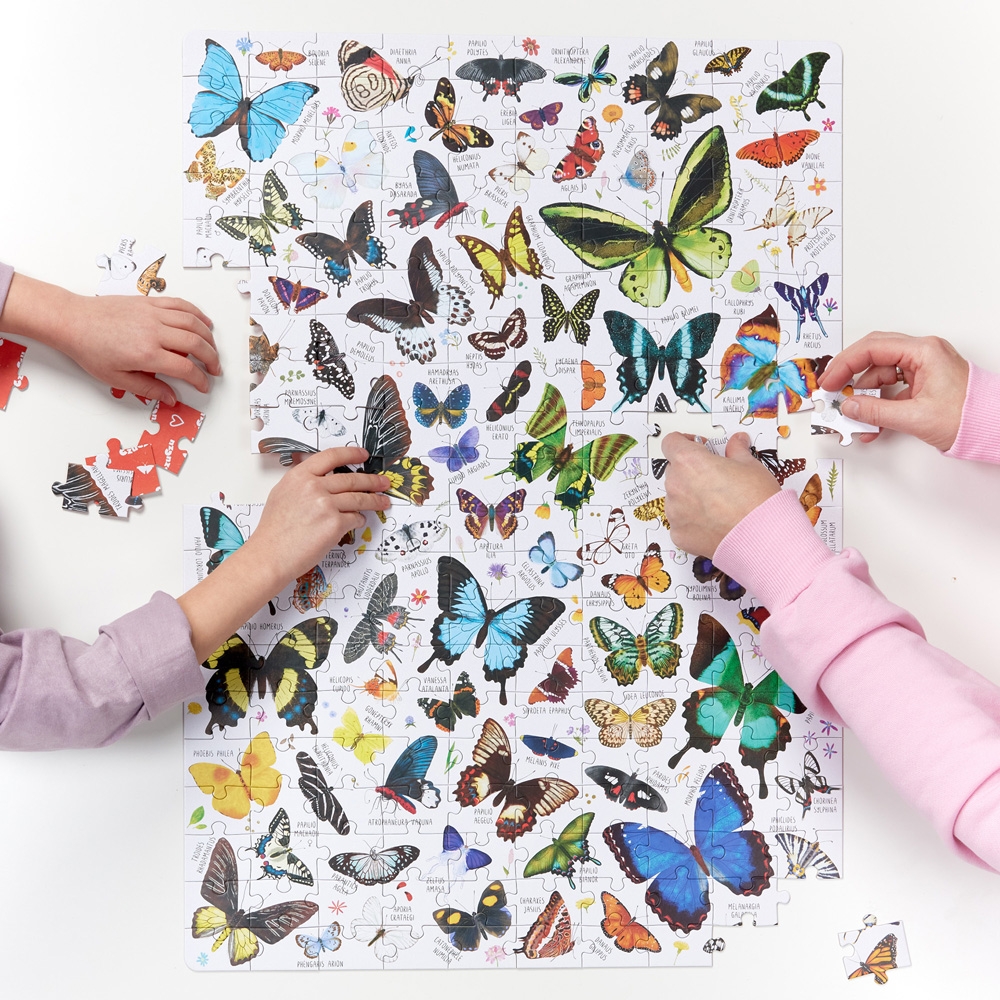 Kolorowe motyle przyfrunęły, aby stworzyć te wyjątkowe puzzle. Przed Wami przeróżne latające owady: małe i duże, tajemnicze i dobrze znane, takie, które można spotkać za oknem, jak i na krańcu świata! Czy znacie je wszystkie? Ułóżcie duże 200-elementowe puzzle i zatrzymajcie na dłużej ulotne chwile!