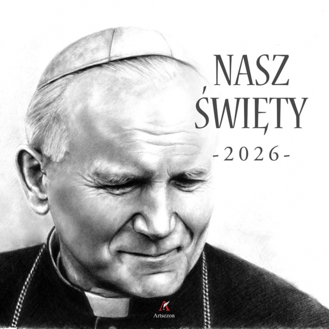 Opis: Kalendarz 2026 wieloplanszowy 33x33cm Nasz Święty