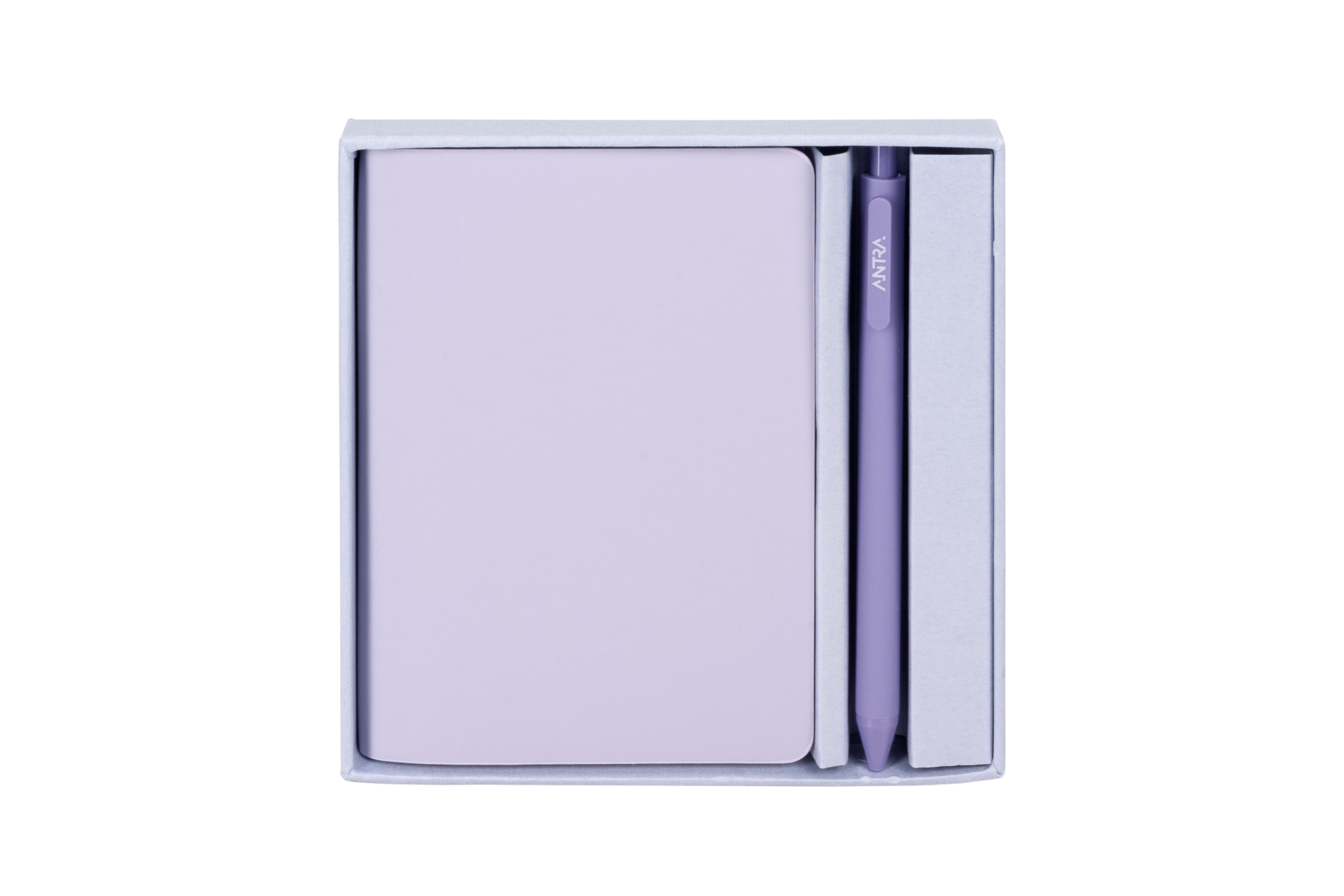 Opis: Notes z długopisem A6 w pudełku - Liliowy