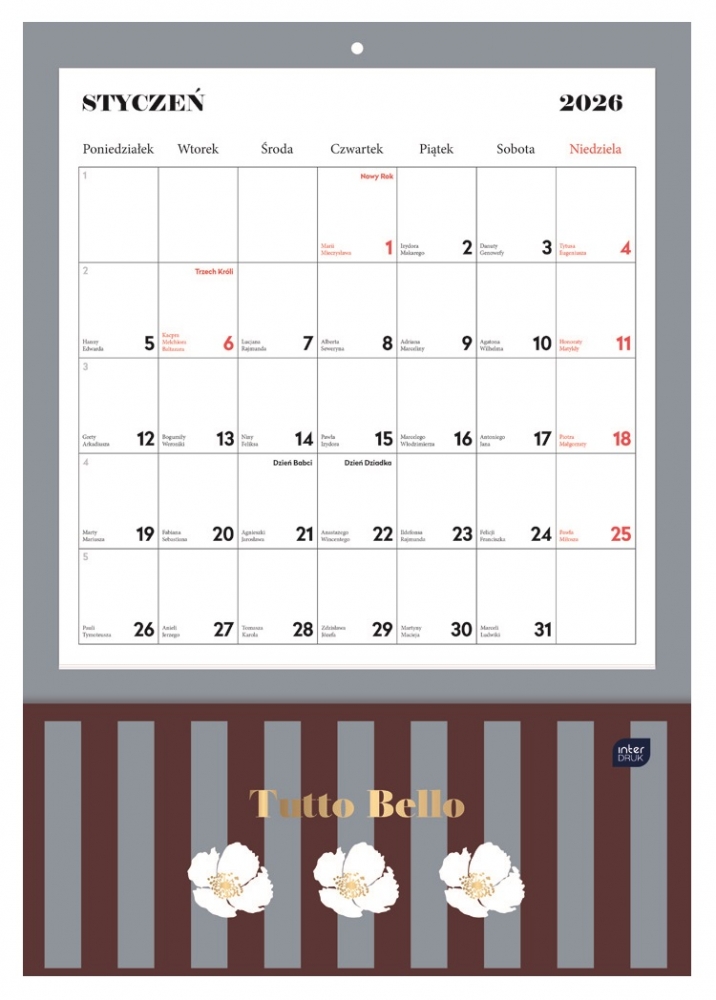 Kalendarz ścienny z kieszonką 2026 - Tutto