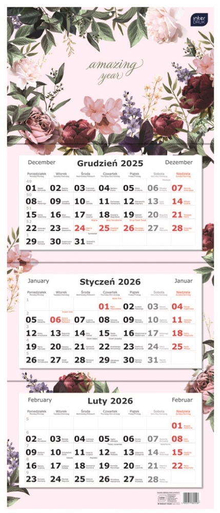 Szczegóły: Kalendarz trójdzielny 2026 - Kwiaty