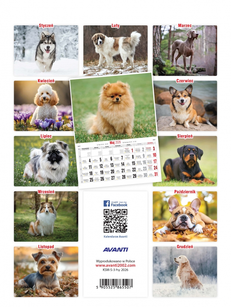 Szczegóły: Kalendarz ścienny mały spirala 2026 - Psy