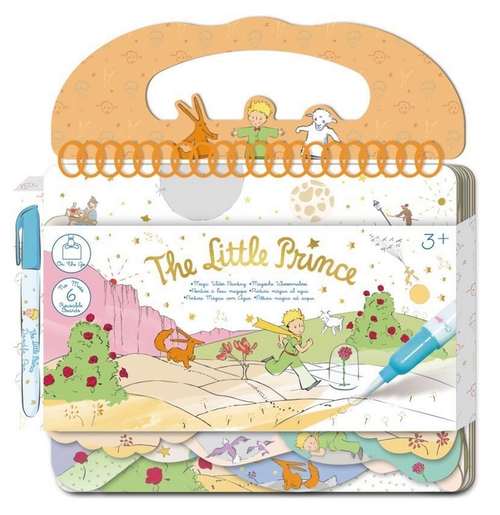 Magiczne wodne kolorowanie - bez bałaganu, gdzie tylko chcesz! Książka z pięknymi obrazami do kolorowania (wielokrotnego użytku) inspirowanymi książką Mały Książę. Napełnij pisak wodą, a następnie rysuj, aby odsłonić kolory na stronach - zniknie, gdy woda wyschnie, potem zacznij od nowa! To niekończąca się zabawa!