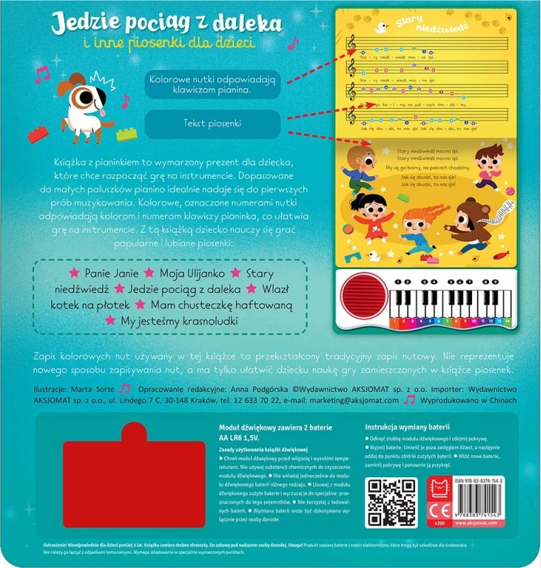 Szczegóły: Jedzie pociąg z daleka i inne piosenki dla dzieci. Sam zagraj i zaśpiewaj piosenki! Książka z pianinkiem - Anna Podgórska