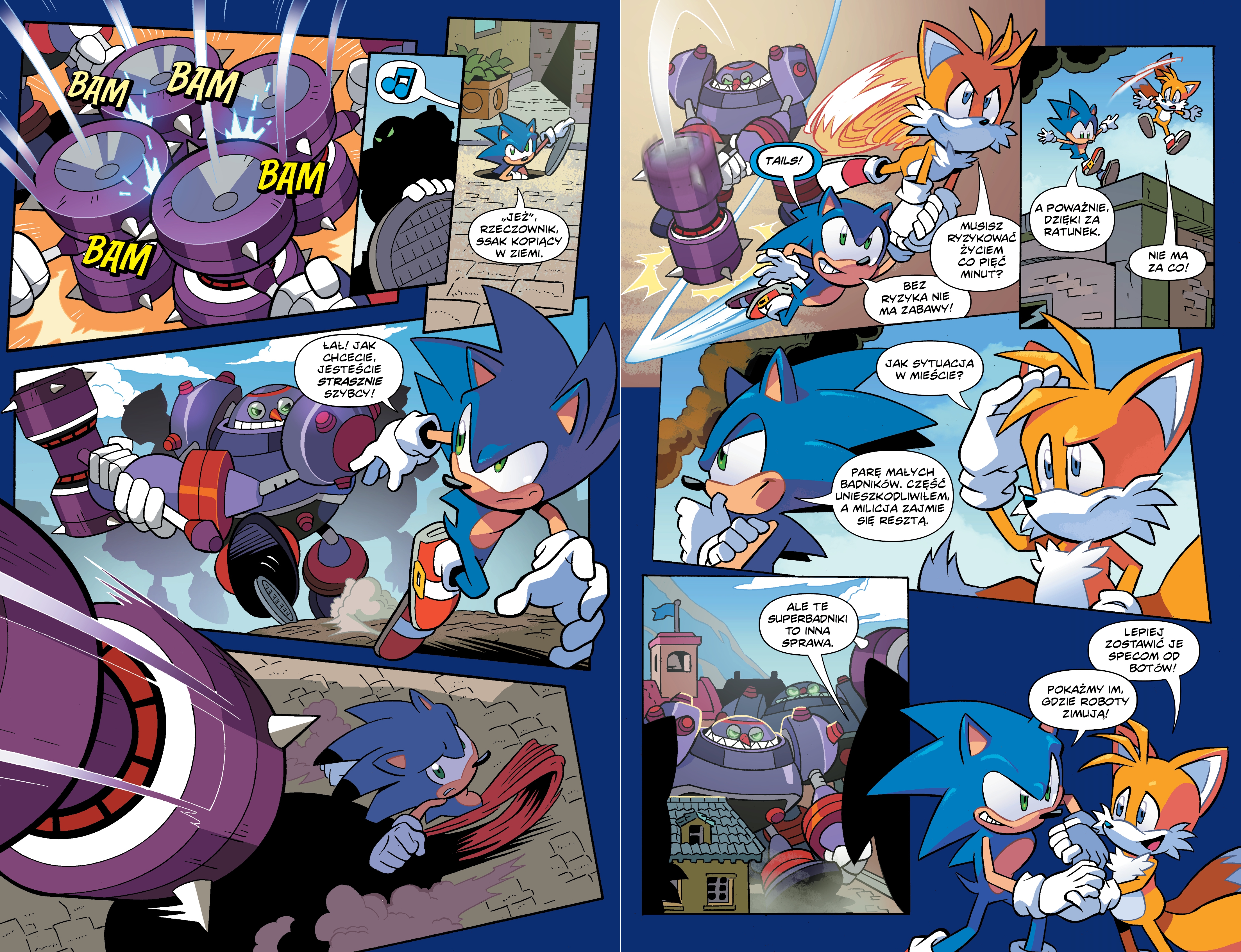 Sonic i przyjaciele ścigają się z czasem, by powstrzymać złego doktora Eggmana i jego hordy robotów! Geniusz zła, doktor Eggman, został pokonany, lecz Sonic nie ma ani chwili odpoczynku! Po ostatnim heroicznym starciu, iedobitki robotów nieustannie atakują małe miasteczka na całym świecie. Aby stawić im czoła, Sonic będzie potrzebował pomocy zaufanych przyjaciół – Tailsa, Knucklesa i Amy, a także zupełnie nowych, nieoczekiwanych sojuszników! Scenariusz Ian Flynn, rysunki Tracy Yardley, Adam Bryce Thomas, Jennifer Hernandez i Evan Stanley.
