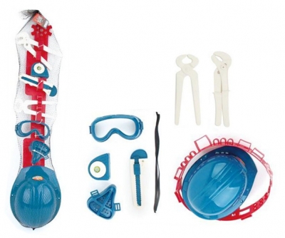 Zestaw dla małego majsterkowicza w siatce – zawiera kask, gogle, narzędzia i akcesoria do zabawy. Zabawka przeznaczona dla dzieci od lat 3. Produkt zapakowany w worek z siateczki. Podane wymiary są wymiarami produktu w opakowaniu.