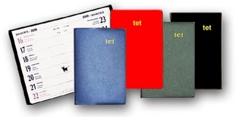 Format 8 x 12 cm, 128 stron; okładki plastikowe z folii w kolorze niebieskim, zielonym, srebrnym oraz czerwonym i czarnym; kalendarium tygodniowe, miejsce na notatki, podwójne imiona, numeracja tygodni i dni roku, fazy Księżyca, znaki zodiaku, w niedziele godziny wschodu i zachodu Słońca; skrócone kalendarium roku bieżącego oraz następnego, rozkład świąt w kilku kolejnych latach; wymienna wkładka zawierająca telefony kierunkowe, notes teleadresowy, daty imienin, informacje o jednostkach miar, odległości drogowe i kolejowe, pola figur i objętości brył, podział administracyjny Polski, wartość kaloryczną produktów.
