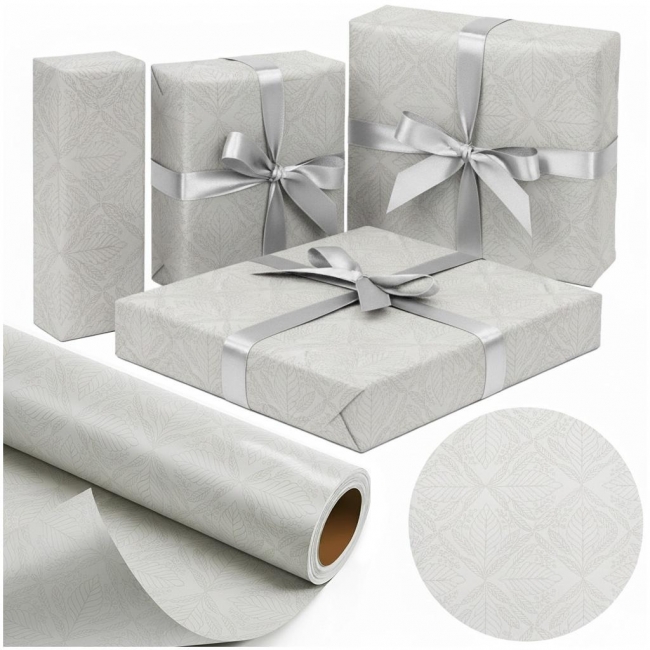 Papier ozdobny Srebrny Liść zachwyca subtelnym wzorem liści i gałązek w odcieniach srebra i beżu. Delikatny połysk i elegancka kompozycja sprawiają, że każdy upominek wygląda jak luksusowy prezent z butikowego opakowania. Idealny dla osób, które cenią estetykę, prostotę i styl, a jednocześnie lubią dodawać osobisty akcent do każdego podarunku. Doskonale sprawdzi się do pakowania prezentów, dekoracji wnętrz, scrapbookingu i kreatywnych projektów DIY.Co wyróżnia ten papier: