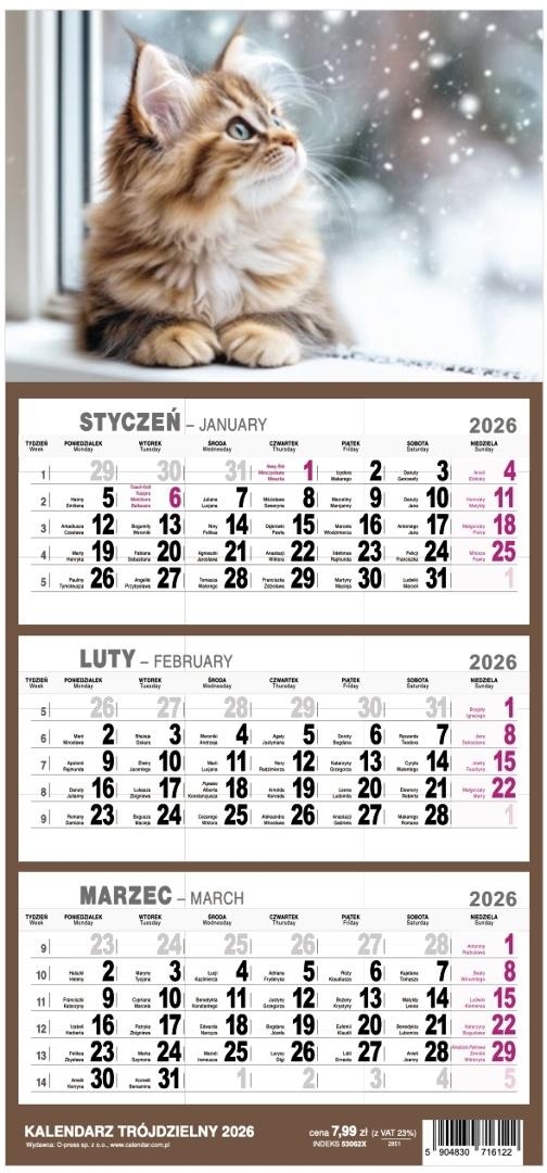 Szczegóły: Kalendarz 2026 Trójdzielny Mały MIX
