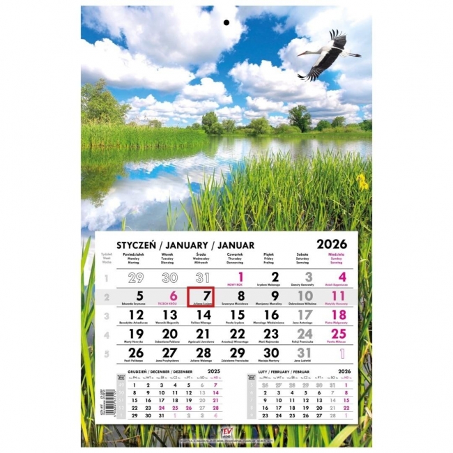 Szczegóły: Kalendarz 2026 jednodzielny główka płaska Mazury