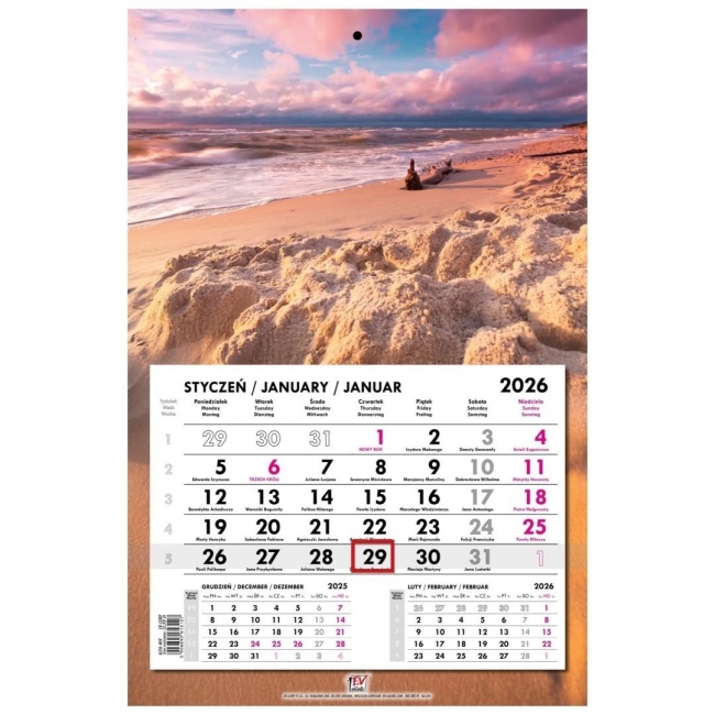 Szczegóły: Kalendarz 2026 jednodzielny główka płaska Bałtyk