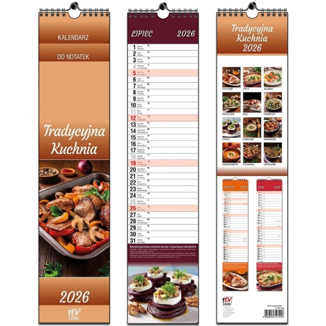 Opis: Kalendarz 2026 paskowy 13 planszowy Kuchnia