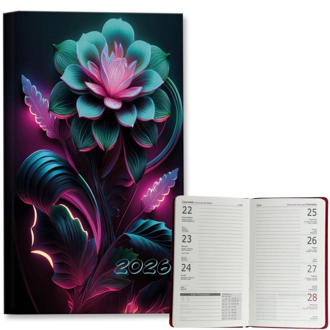 Szczegóły: Kalendarz 2026 A6 tygodniowy Neonowe Kwiaty
