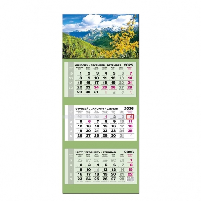 Opis: Kalendarz 2026 trójdzielny LUX gł. wypukła Tatry
