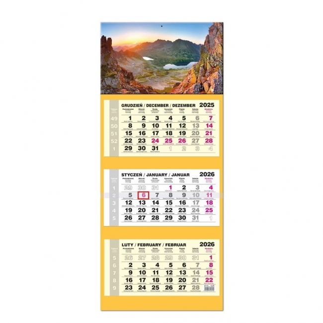 Opis: Kalendarz 2026 trójdzielny LUX gł. wypukła Tatry