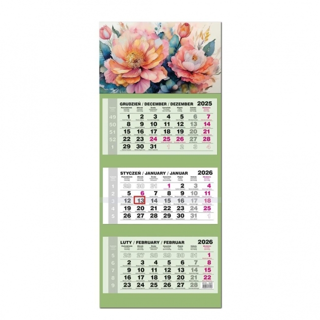 Szczegóły: Kalendarz 2026 trójdzielny LUX gł. wypukła Kwiaty