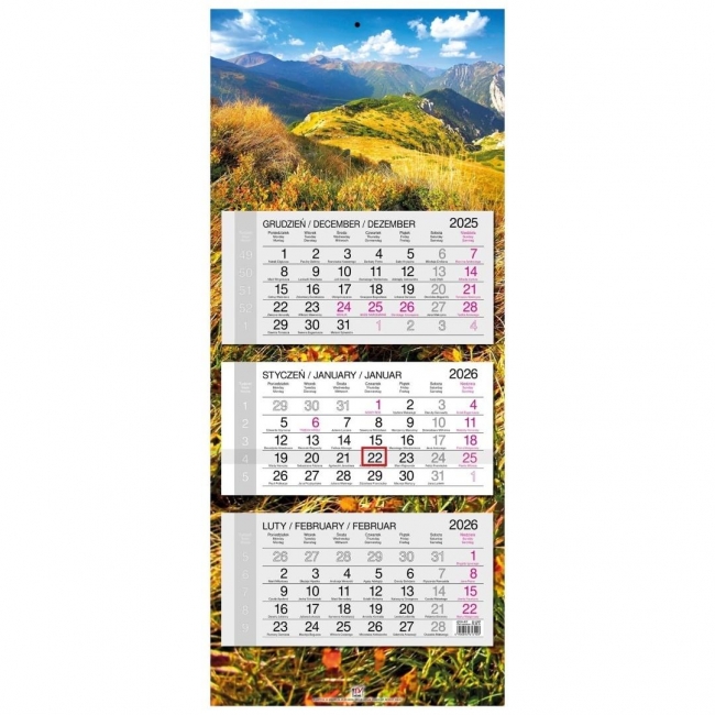 Szczegóły: Kalendarz 2026 trójdzielny główka płaska Tatry