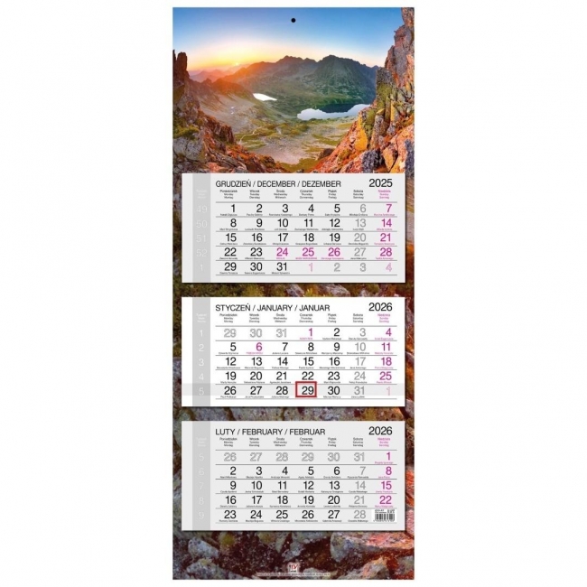 Kalendarz 2026 trójdzielny główka płaska Tatry