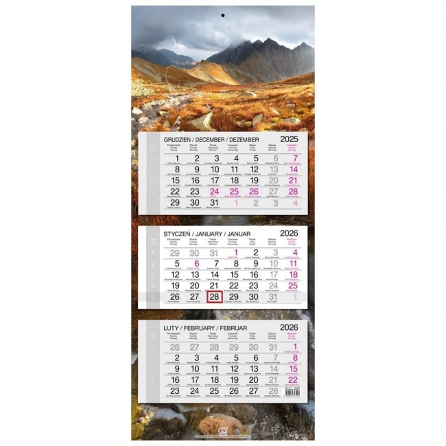 Kalendarz 2026 trójdzielny główka płaska Tatry