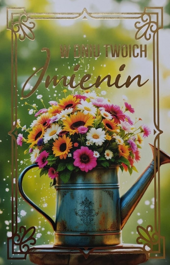 Karnet 2k. Klasyczny karnet na imieniny dla kobiety. Uszlachetniony wysokiej jakości hotstampingiem ( złocenie ). Karnet zawiera życzenia.