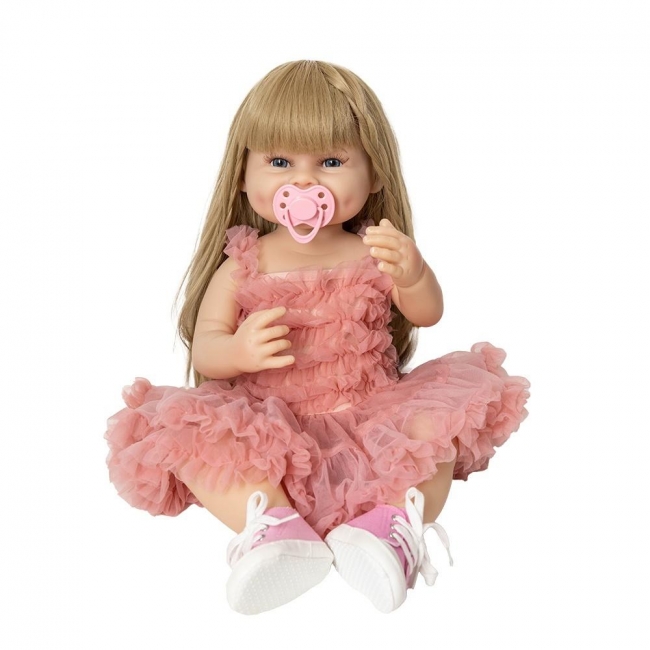 Realistyczna lalka z pięknymi włosami o wysokości 52 cm wykonana z miękkiego tworzywa imitującego skórę dziecka to idealna zabawka dla każdego malucha.