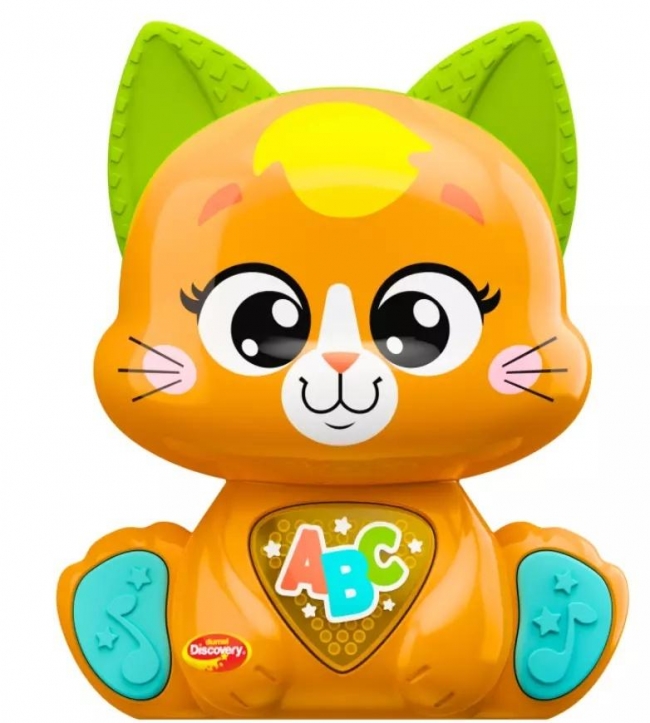 Zwariowany zwierzak kryje w sobie mnóstwo rozweselających dźwięków! Jego rozśpiewany brzuszek odtwarza wesołe piosenki, a uruchamiający je przycisk, świeci podczas odtwarzania dźwięków. Kotek posiada czujnik dotyku na czółku, dzięki czemu, podczas głaskania kotka po głowie, maluch usłyszy wesołe frazy, wypowiadane przez zwierzaka. Kocie łapki także zadbają o rozrywkę malucha! Przycisk na pierwszej z nich uruchamia tryb wyzwań, w którym kotek aktywizuje najmłodszych trzema propozycjami zabaw. Druga łapka uruchamia melodie. Kociak wyposażony został w praktyczny przełącznik ON/OFF, umożliwiający wyłączenie zwierzaka po zakończonej zabawie.