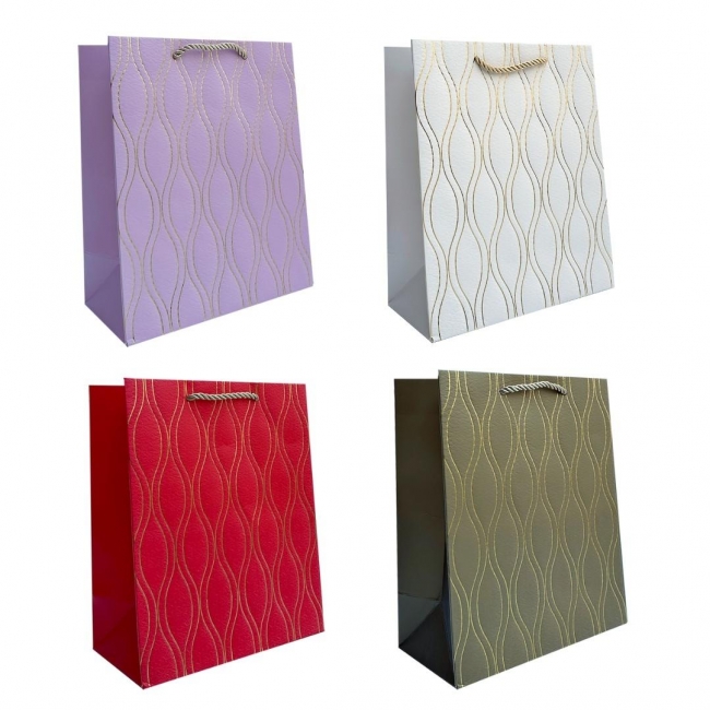 Papierowa torebka prezentowa wykonana z grubszego papieru o gramaturze 210 g, co zapewnia jej większą trwałość i odporność na obciążenie. Wyposażona w grubszy, kolorowy sznurek, który zapewnia wygodny uchwyt i estetyczne wykończenie. To praktyczne opakowanie, które podkreśla wartość wręczanego prezentu. Torebka posiada dekoracyjne elementy brokatowe w postaci subtelnego wzoru na całej torebce.