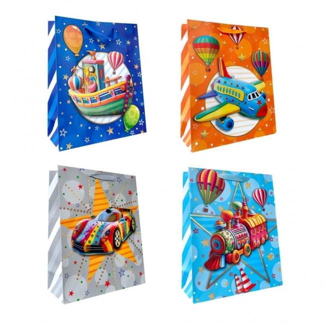 Nazwa: Torebka prezentowa dziecięca S brokat pojazdy mix