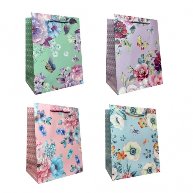Torebka prezentowa uniwersalna M Kwiaty brokat mix