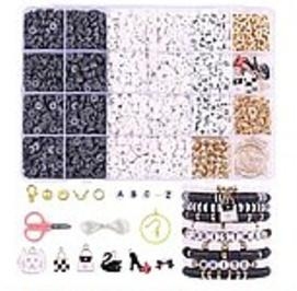 zestaw do robienia bransoletek, koraliki czarne, białe, złote, aplikacje, literki, sznurki; Box