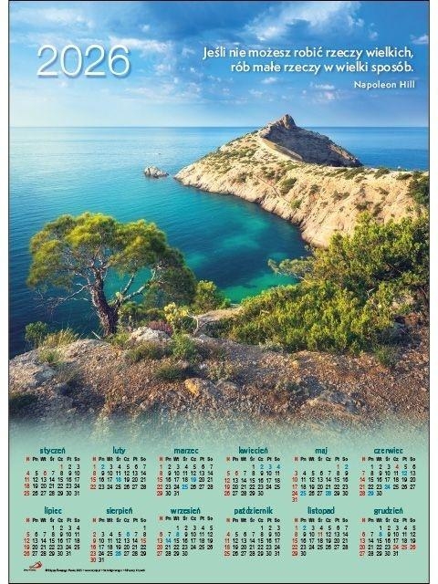 Szukasz kalendarza, którego widok da Ci chwilę wytchnienia? Powieś na ścianie kalendarz plakatowy Krym z pięknym cytatem Jeśli nie możesz robić rzeczy wielkich, rób małe rzeczy w wielki sposób. To praktyczny pomocnik, który da Ci poczucie kontroli nad swoim czasem.