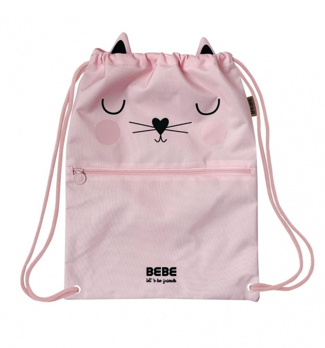 Praktyczny worek z kieszonką na zamek to idealne rozwiązanie na zajęcia sportowe, wycieczki czy codzienne aktywności! Wyposażony w zewnętrzną kieszonkę na suwak na drobiazgi oraz wszywkę do podpisania, co ułatwia identyfikację. Kompaktowe wymiary (32x42 cm) zapewniają wygodę noszenia, a uroczy wzór kotka z kolekcji BEBE Friends, ozdobiony wystającymi uszkami, nadają mu wyjątkowego charakteru.