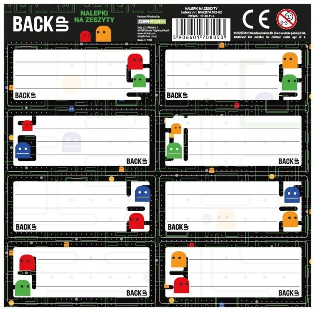 Szczegóły: Nalepki na zeszyt BackUp 7 A102 (25szt) DERFORM