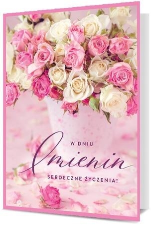 Kartka zawiera życzenia. W zestawie znajduje się koperta, kolorystycznie uzupełniająca się z kartką.
