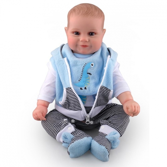 Realistyczna lalka o wysokości 56 cm wykonana z miękkiego tworzywa imitującego skórę dziecka to idealna zabawka dla każdego malucha. Każdy szczegół został zaprojektowany z myślą o autentyczności - zmarszczki nadają jej naturalny wygląd. Lalka ubrana jest w piękne dziecięce ubrania.Cechy produktu: Wysokość lalki: 56 cm Materiał: Miękkie tworzywo imitujące skórę dziecka Waga lalki: około 2 kg Wymiary opakowania: 20 x 12 x 57 cm